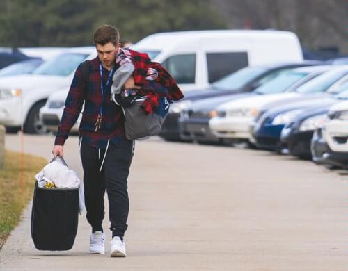 First-year students Taylor McMiller and Brody Conaty loaded up their clothes and other items to head back to Detroit and Grand Ledge, respectively.