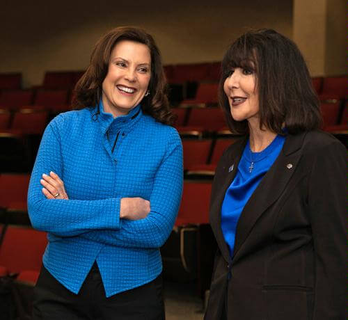 With Michigan's governor on campus, President Philomena V. Mantella announced an accelerated program that will help adults complete their bachelor's degrees and enhance productivity.