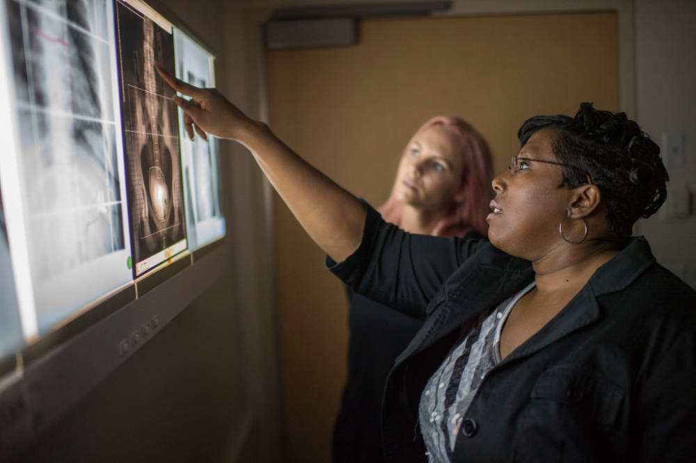 Radiation therapists are responsible for accurately recording, interpreting, and administering the treatment prescribed by radiation oncologists. During treatment, therapists help physicians use fluoroscopy, x-ray, or computed tomography to localize and outline anatomical areas requiring treatment. Secondary application and admission are required.