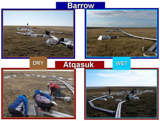 The sites span gradients of temperature, from cooler Utqiaġvik (formerly Barrow) to warmer Atqasuk, and moisture, from wet meadow to dry heath tundra types. The original ITEX sites consist of 24 experimental and 24 control plots. The experimental plots use small, passive, clear-plastic, open-top chambers to warm the tundra. The chambers raise the daily temperature of the tundra plant canopy by 1.5 to 2.0 ºC which is in the range predicted by global climate simulations for the next 50 years.