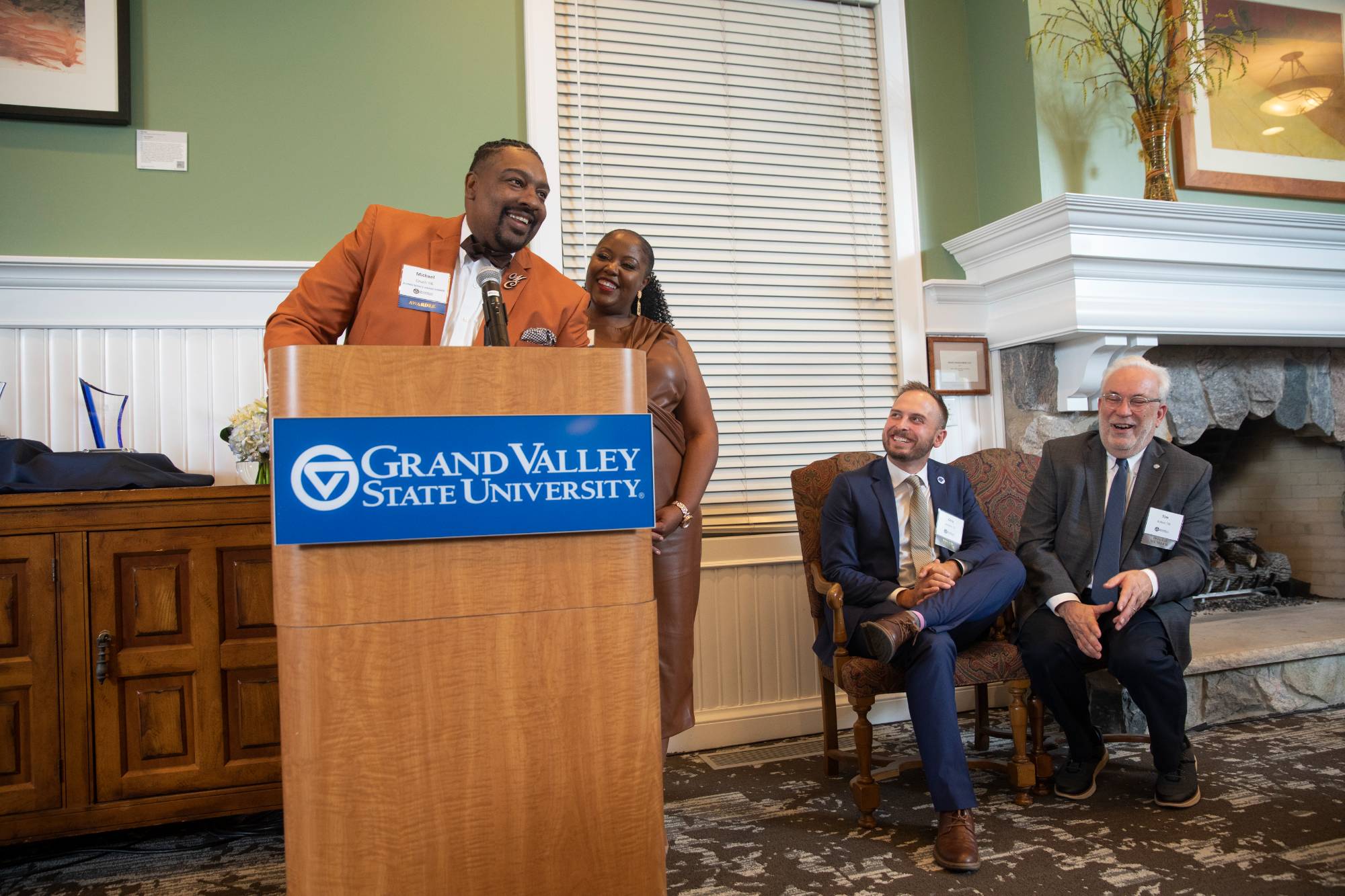 Janean '05 & '08 and Michael Couch '06, are the recipients of the 2022 Alumni Service Award. The honor is awarded to an alumnus or alumna who demonstrates outstanding service to the university and the Alumni Association. The awardee is selected by the GVSU Alumni Relations staff and the award is presented during Homecoming weekend.
