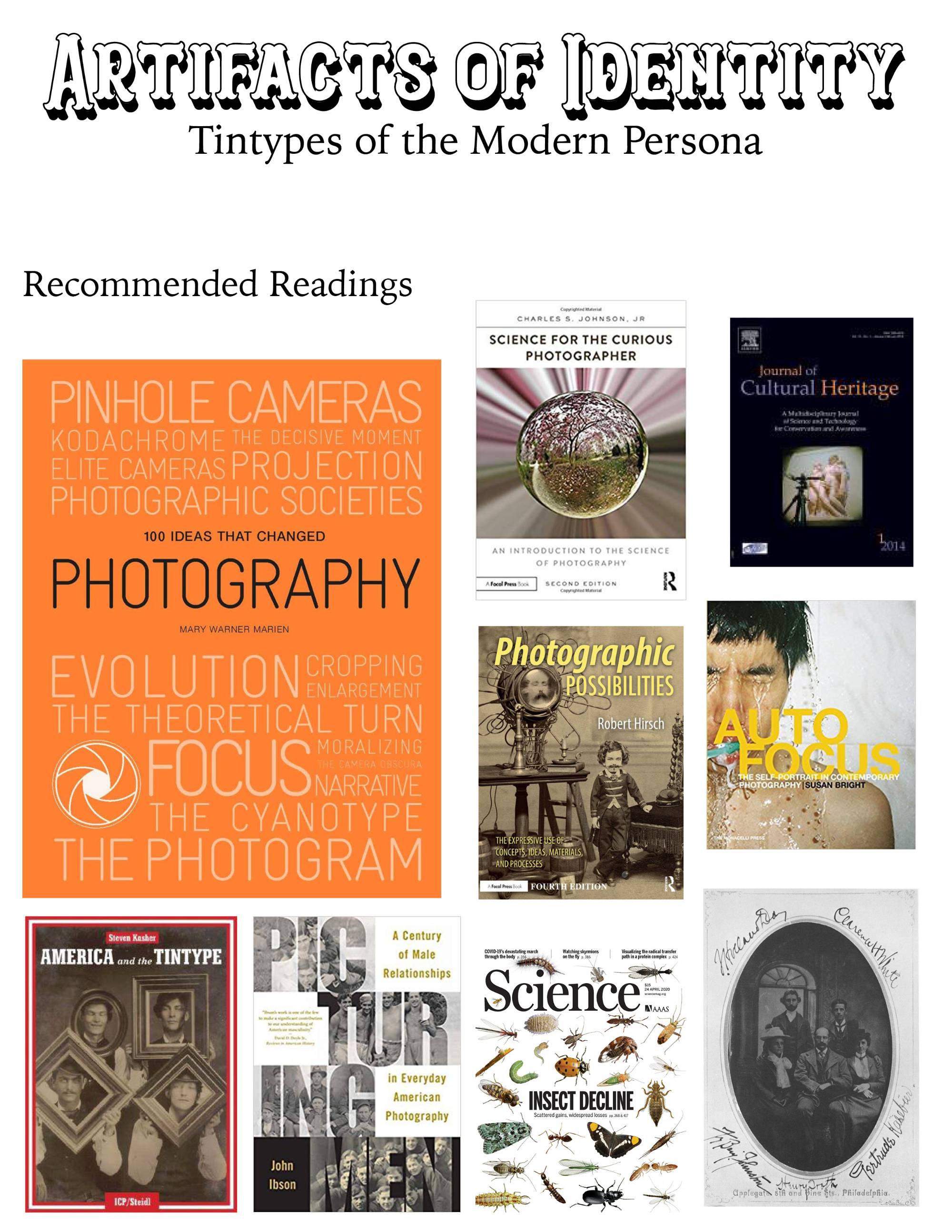 This exhibition showcases the process of tintype photography, its impact on the photographic arts, and how photographic portraits shape and are shaped by an individual's identity characteristics including age, race, gender, and sexual orientation, among others. This exhibition engages themes related to identity, chemistry, and history. Check out the following GVSU Library books and articles to learn more about these key themes or use the Libraries Catalog to find more information.