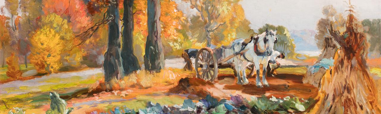 Like many American painters of the period, Alten was drawn to the major artistic and cultural centers of Europe and the United States. Beginning in 1898 and continuing over the next four decades, he traveled extensively to pursue artistic training, exhibit his work, and engage with fellow artists. Despite his attraction to distant locales and artistic communities, Alten chose to keep his professional home in the same city and state that welcomed his family during the late nineteenth century. As a result, his work was influenced by the landscapes and techniques he discovered abroad, but remained deeply connected to the rural Michigan landscape widely featured in his paintings.