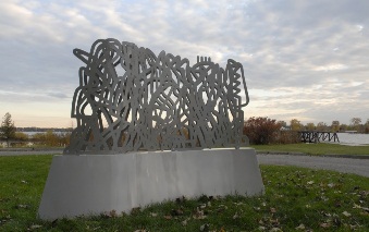 Details - Year created: 2012, 108" wide, 28" deep and 60" high, 3-D Powder coated aluminum/Water jet fabricated