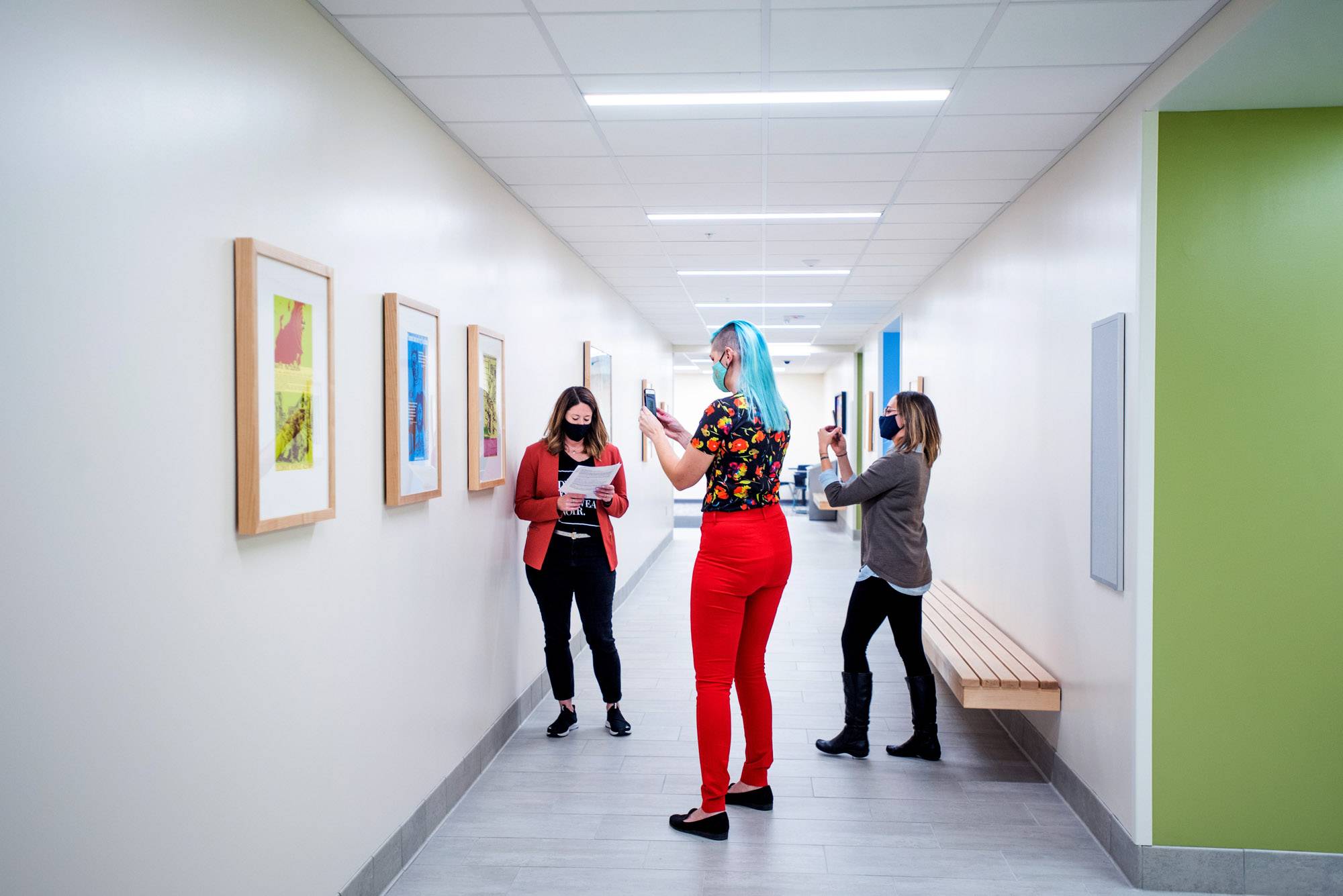 Bottom center: south stairwell featuring work by Brad Walworth; 2019.62.2.