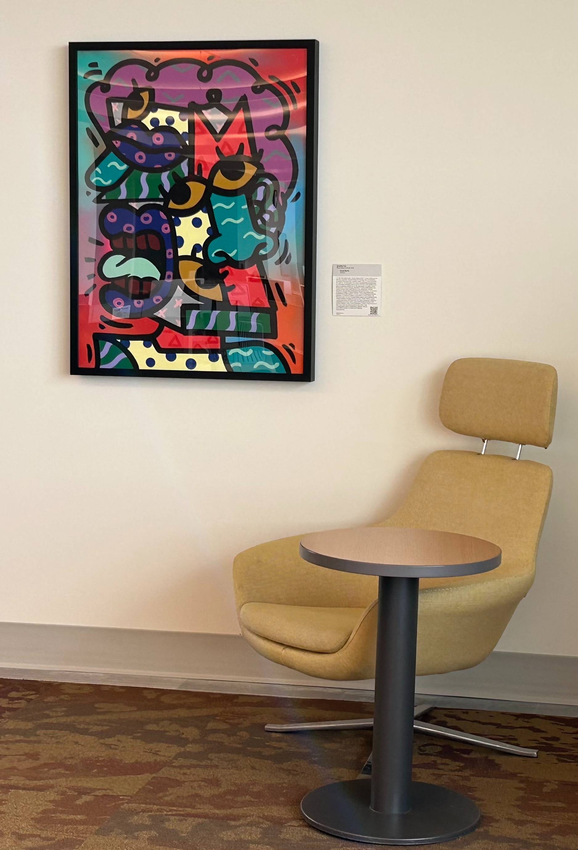 In 2023 the GVSU Art Gallery partnered with the Libraries to refresh artwork displayed in high-traffic areas of MIPL. Each work of art explores a theme or core value held by GVSU. Acute attention was given to fostering environments through works of art that affirm and advance diversity, promote inclusion, and support equity.