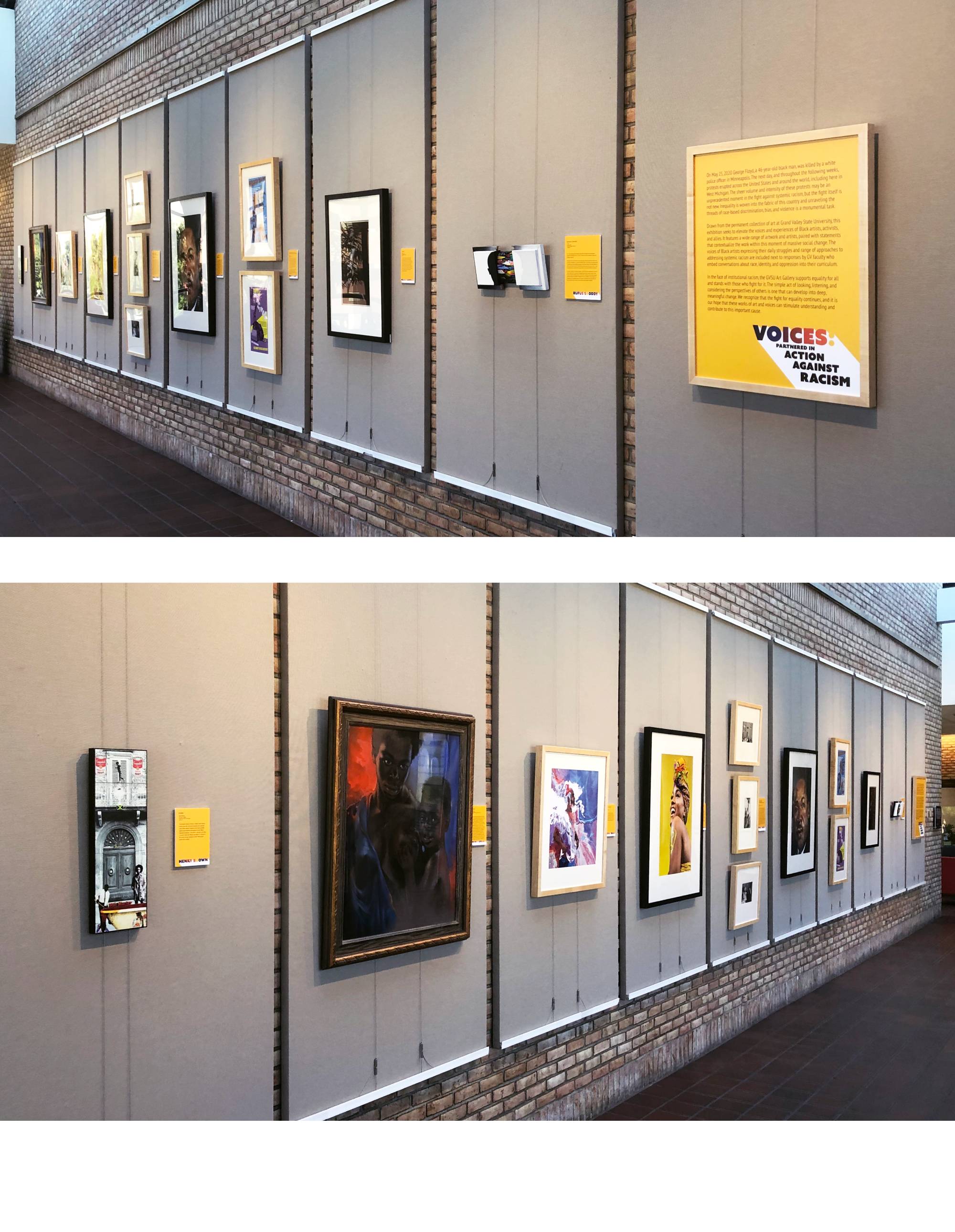 Drawn from the permanent collection of art at Grand Valley State University, this exhibition seeks to elevate the voices and experiences of Black artists, activists, and allies. It features a wide range of artwork and artists, paired with statements that contextualize the work within this moment of massive social change. The voices of Black artists expressing their daily struggles and range of approaches to addressing systemic racism are included next to responses by GV faculty who embed conversations about race, identity, and oppression into their curriculum.