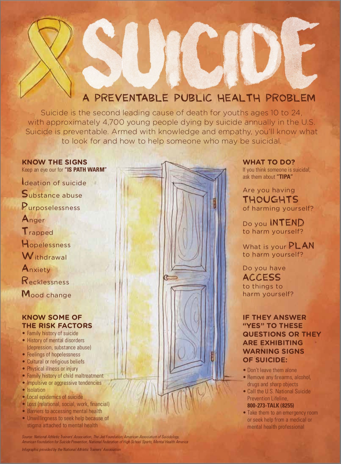 This infographic highlights the prevalence of suicide and explains the warning signs and how to obtain help. Suicide is preventable.