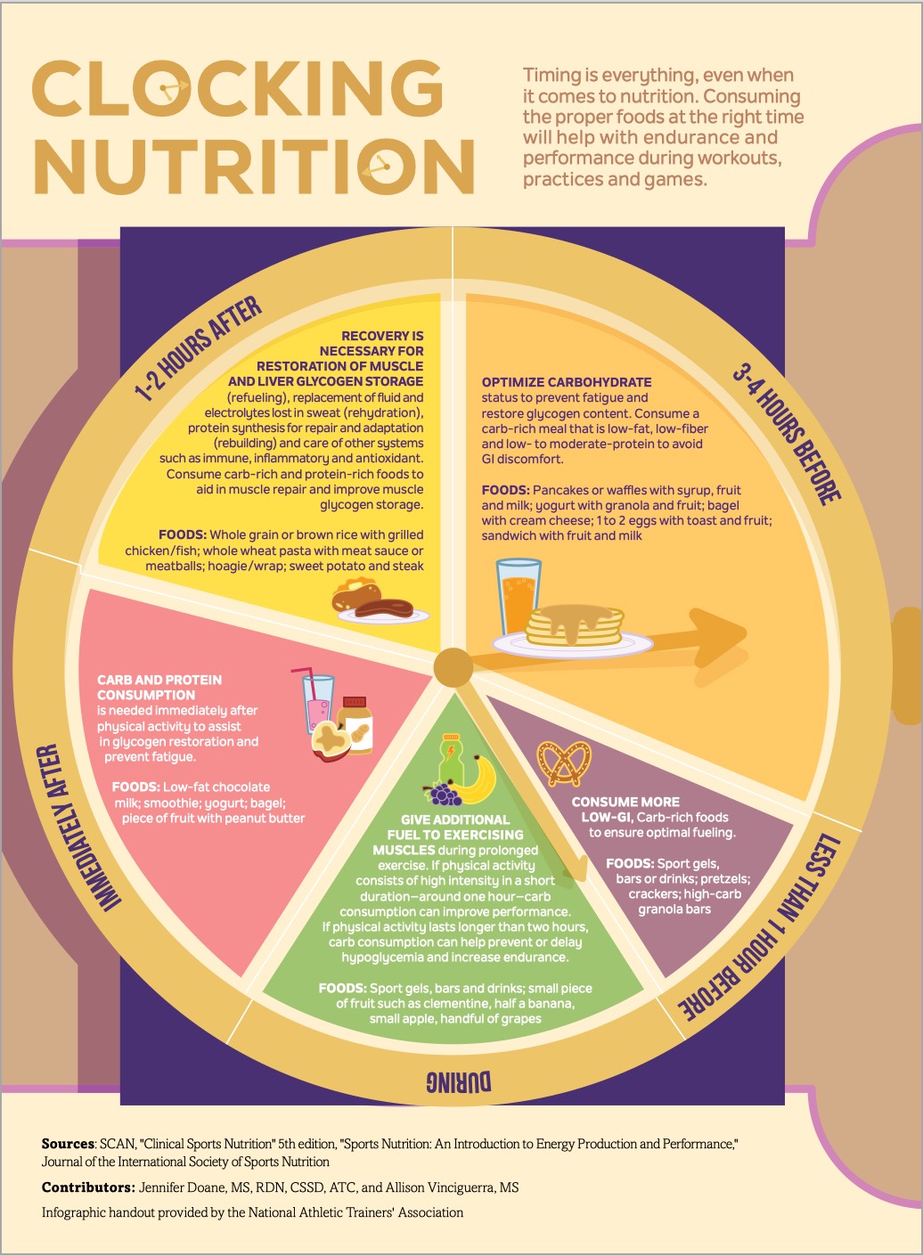 This infographic shares recommendations on when to consume foods to help with endurance and performance.