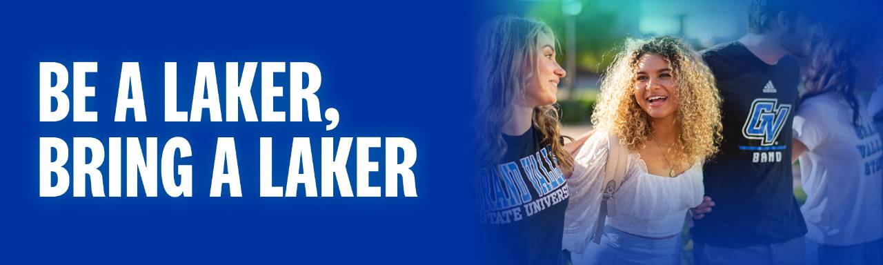 Every Grand Valley alumni, parent, student, and faculty or staff member knows someone who would benefit from a GVSU education. We can help them get here. Consider connecting with the prospective student in your life, share your positive Grand Valley experiences, and encourage them to apply. We'll show you how and give you the resources to create future Lakers.
