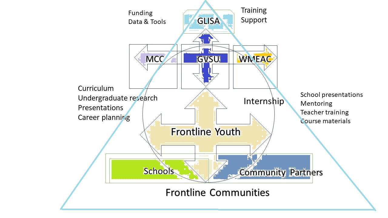 GLISA ELF will develop a multi-tier community-based climate change education system fostering support, engagement, and empowerment of high school and college students. Geographically, the project will focus on Muskegon County, but the proposed collaborative model could be transferable and relevant to other Great Lakes communities facing similar issues. Focusing on climate education and empowerment of high-school and community college students, the proposed project has two interrelated and overlapping goals: A) To develop a transdisciplinary climate change curriculum, integrating climate data and geospatial technologies, including GLISA online tools and datasets, with peer-to-peer learning, community-based research, and mentoring. B) To design and build a system of educational support for youth through developing mentoring and experiential learning projects for high-school students, school and community presentations, and materials and training for high-school teachers.