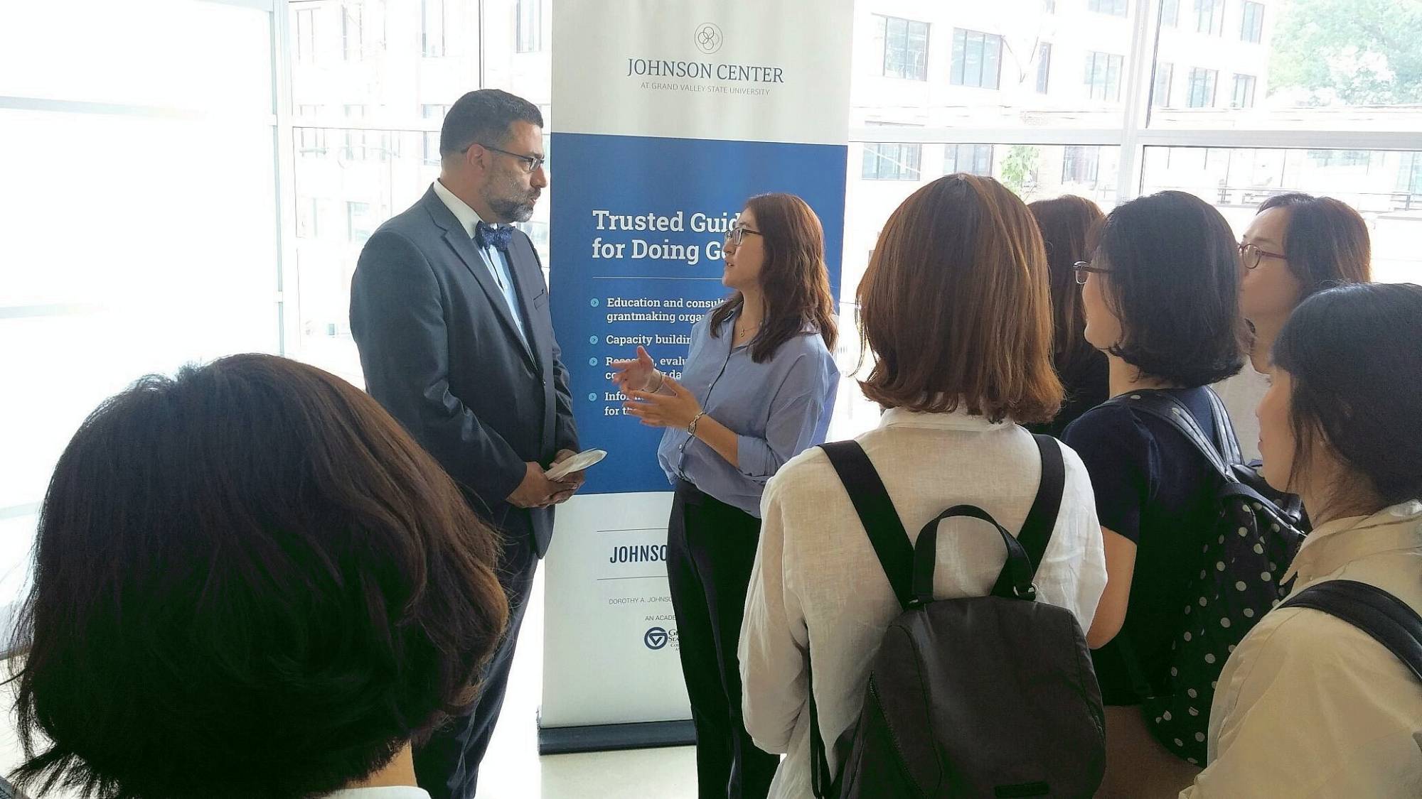 Kyle Caldwell, executive director of the Johnson Center with a delegation from South Korea's Beautiful Foundation in 2016.