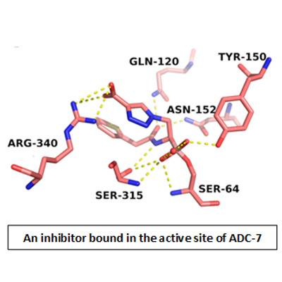 Classified as a “threat level serious” pathogen by the Centers for Disease Control, the multidrug-resistant Acinetobacter baumannii presents one of the greatest challenges to contemporary antimicrobial chemotherapy. Much of the resistance to cephalosporins derives from the expression of the class C β-lactamase enzymes, known as Acinetobacter-derived cephalosporinases (ADCs). While it is possible to inactivate β-lactamase enzymes by inhibitor molecules, current b-lactamase inhibitors are structurally similar to β-lactam antibiotics and are not effective against the class C cephalosporinases.