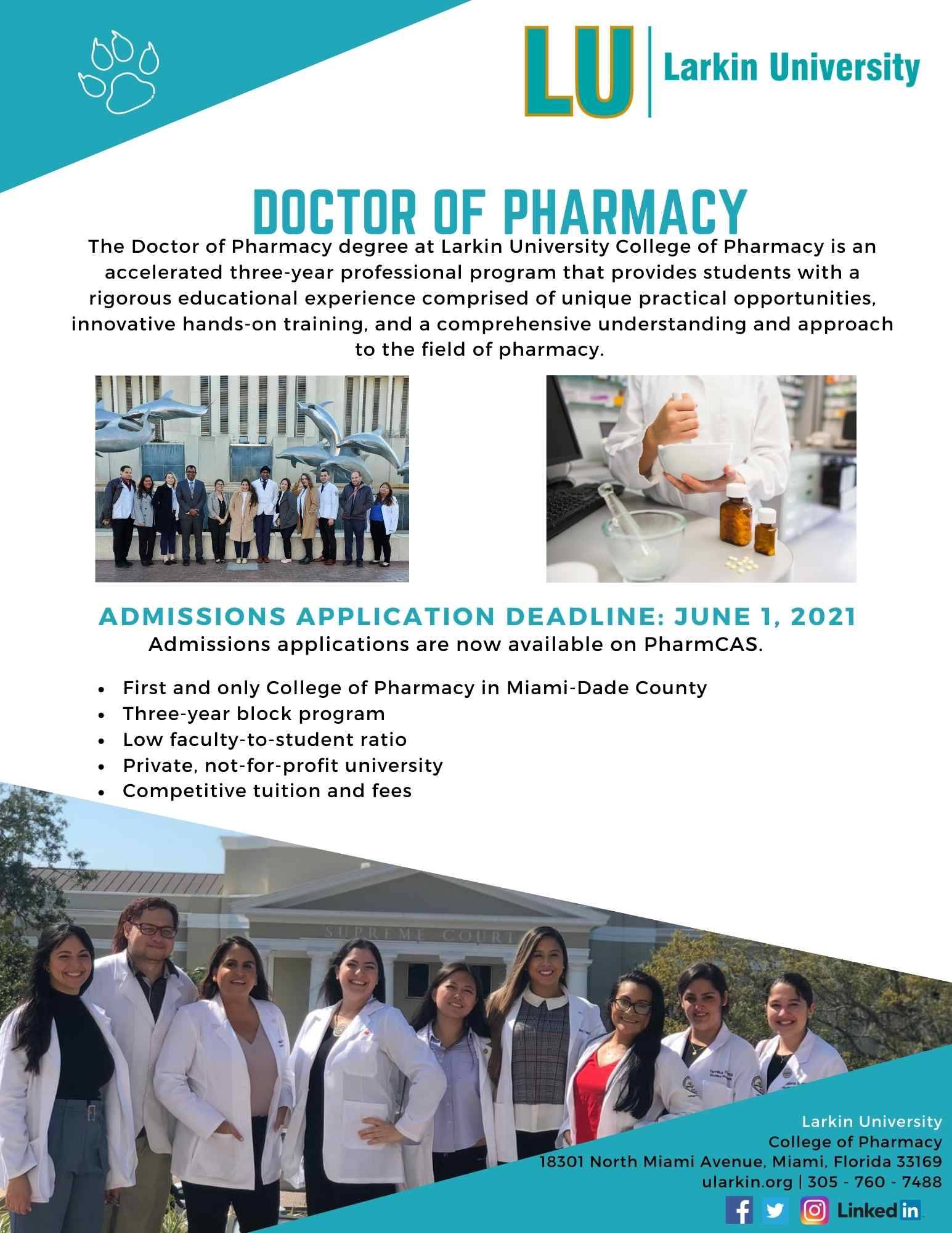 Click here to attend the Virtual Event for Larkin University College of Pharmacy
