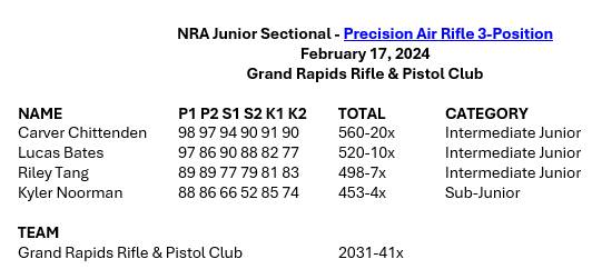 Michigan State Championship 3-Position Outdoor Conventional Smallbore |