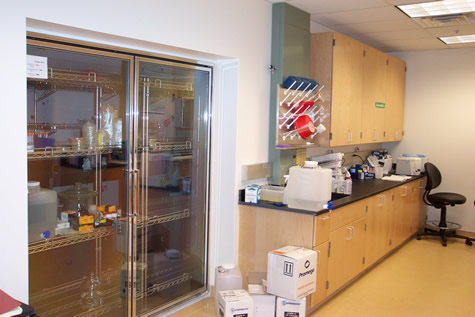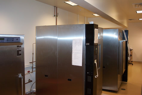 2 rooms (per room): 2 laminar flow hoods, 2 water-jacketed CO2 incubators 2 Eppendorf speed vacs 2 gel dryers Kodak Gel Logic gel documentation system 2 rooms (per room): 2 biosafety cabinets 2 water-jacketed CO2 incubators Labconco lyophillizer 2 -80 freezers 1 room: Eppendorf microinjection system w/ Zeiss Axiovert 200 microscope hook-up 6 variable temp benchtop incubators 6 refrigerated water baths Walk-in cold room [