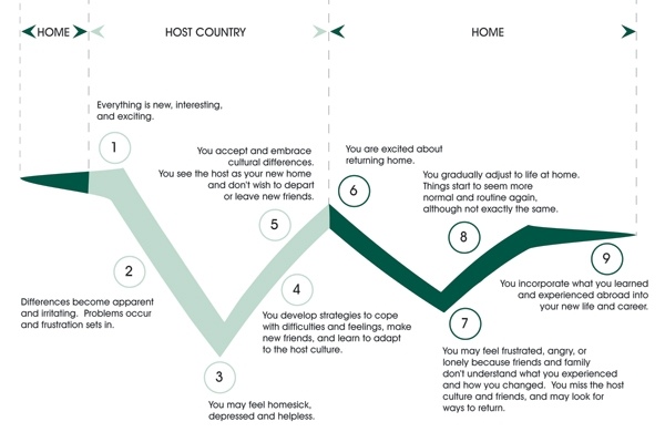 While things have been relatively smooth at home, and you have been busy packing, finishing classes, saying good-bye to family and friends, and hopefully reading a bit about the upcoming experience, once you arrive at your overseas destination suddenly most things in your surroundings will change. Student teachers overseas find themselves faced with new foods, a new environment, new accents and/ or languages, new educational systems, lack of familiarity with local teaching examples and methods, new living arrangements, different means of transportation, missing family and friends, and yes even your familiar college faculty and facilities. While everybody reacts differently to these changes, everybody, nonetheless, is affected.