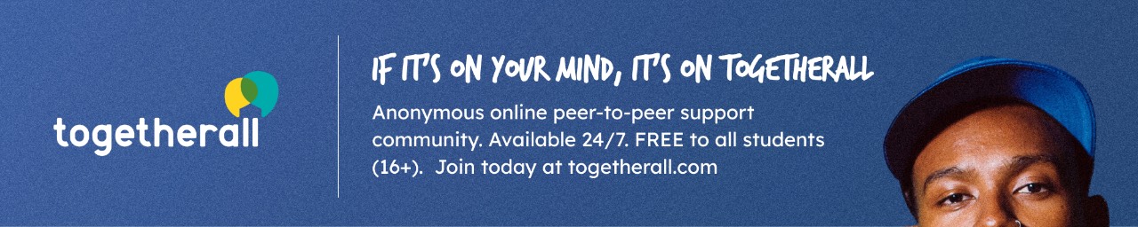 Join the Togetherall community to take control of your mental health and well-being and stay connected to others with similar experiences. Togetherall’s online community is clinically moderated by mental health professionals and offers students a safe and anonymous place to express their thoughts, concerns and triumphs. Resources are FREE for students to use and are available 24/7/365.