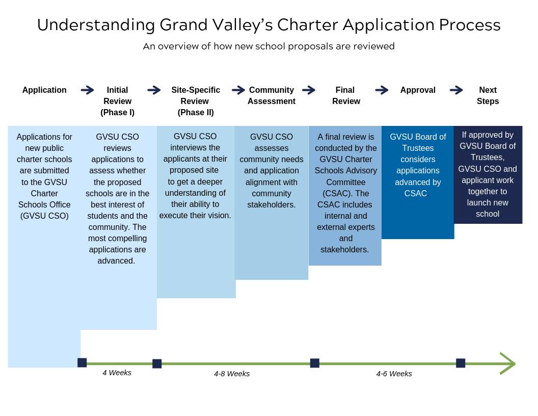- Similar to a charter renewal, the CSO will assess the school’s academic performance against the educational goals in GVSU’s charter contracts.