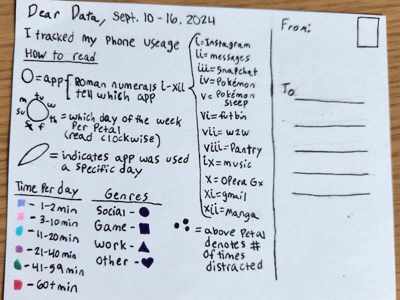 Dear Data is, at its core, a practice of slow data transmission, and an invitation to pause, reflect, and connect with others through the patterns of our everyday lives.