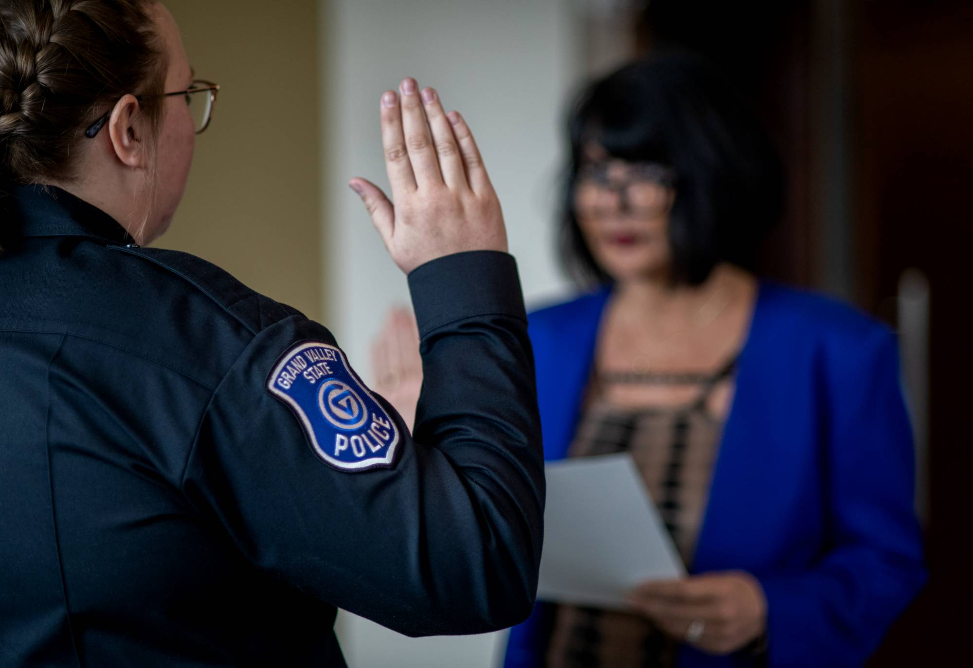 A sponsored police recruit is a Grand Valley State University Police Department employee sponsored to attend a The Grand Valley Police Academy. Upon successful completion of the police academy and licensing through MCOLES, the recruit will be reclassified to a Police Officer. Sponsored police recruits will be paid an hourly wage and receive benefits while attending the academy. GVPD will cover the police academy tuition and other directly related costs.