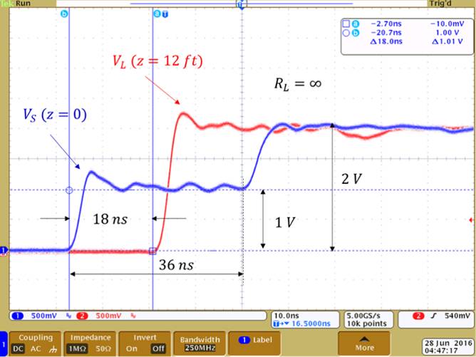 Transmission Line Reflections at a Resistive Load and at a Discontinuity