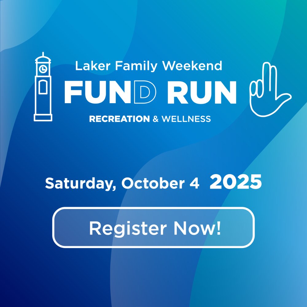 Recreation & Wellness is proud to host the 3rd annual GVSU Family Weekend FUN(D) Run (formerly known as "the 5K") on Saturday, October 4, 2025 @ 9am on Allendale's Valley Campus. Participants will start and end by the Cook Carillon Tower with views of our spectacular campus throughout our 2-mile course.