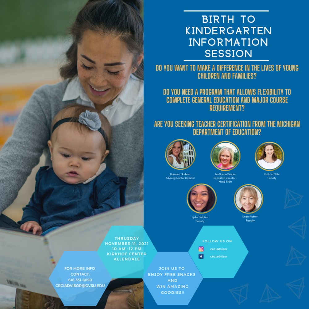 The CECI Undergraduate Advising Center will be offering an information session for the new Birth to Kindergarten Major. Join us to enjoy some free snacks and to connect with our guest panelists about any questions you may have.