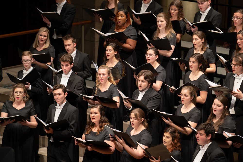 The University Arts Chorale, Anima Vocal Ensemble, Varsity Glee Club, and University Singers perform at St. Cecilia's Music Center.