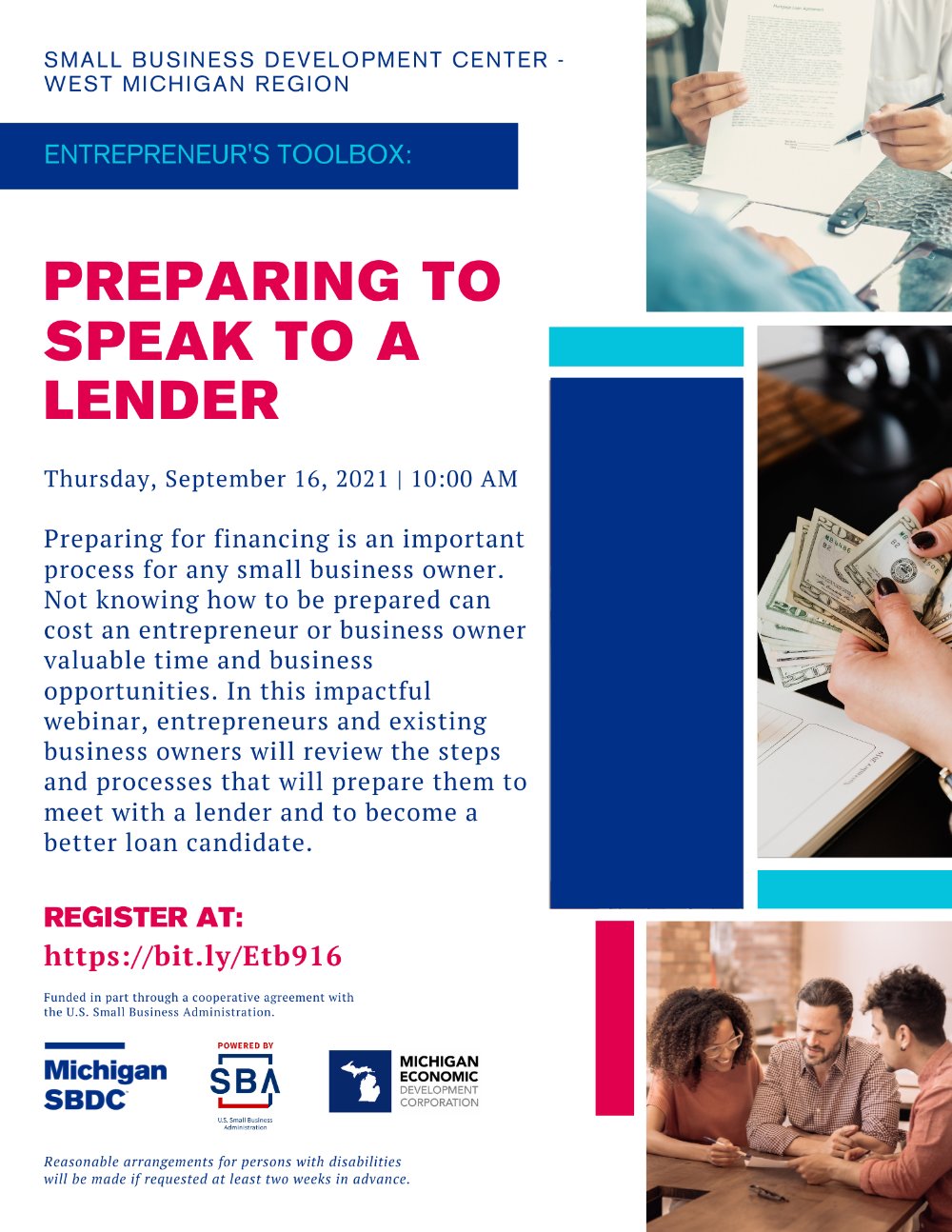Preparing for financing is an important process for any small business owner. Not knowing how to be prepared can cost an entrepreneur or business owner valuable time and business opportunities. In this impactful webinar, entrepreneurs and existing business owners will review the steps and processes that will prepare them to meet with a lender and to become a better loan candidate.