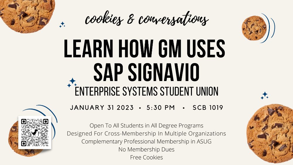 Learn about how ERP Systems are utilized at General Motors! Free cookies will be provided.