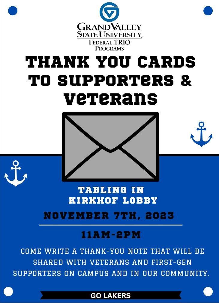Come get information about your options for voting as well as write a thank-you note that will be shared with Veterans on campus and in the community.