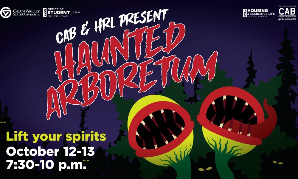 Join CAB, the Office of Student Life, and Housing & Residence Life for Haunted Arboretum on Thursday, October 12 and Friday, October 13 from 7:30 - 10 p.m.