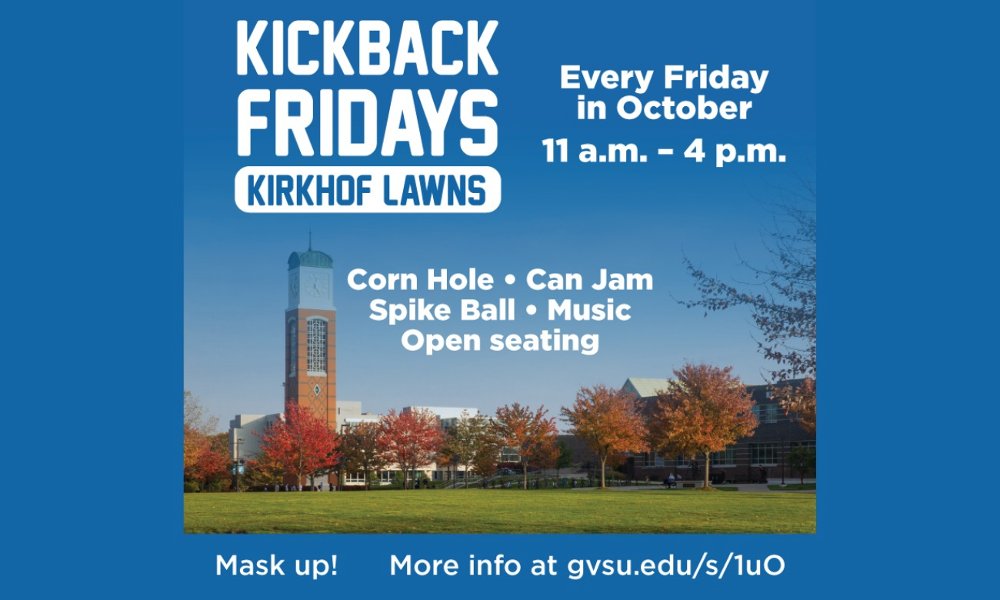 Corn Hole, Can Jam and Spike Ball! Music Streaming! Open seating! Come hang out on the Kirkhof Lawns every Friday in October from 11am - 4pm. Be sure to bring your student ID to check out the game supplies.