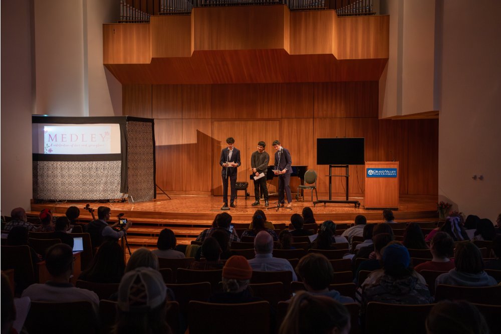 Join us for a thoroughly enjoyable evening of music, poetry, puppets, film, dance, and theater in a celebration of languages from around the world. Thanks to our program that provides English translations of every performance, you can listen to moving poetry in Latin or Italian, tap your foot to songs in Korean and French, and laugh along with some puppet theater in Spanish. Take a break from your studies and bask in the beauty of the diversity of languages represented at Grand Valley. Free appetizers will be available in the lobby of the Cook-Dewitt Center starting at 6:00 pm, with the performance starting at 6:30 pm in the auditorium.