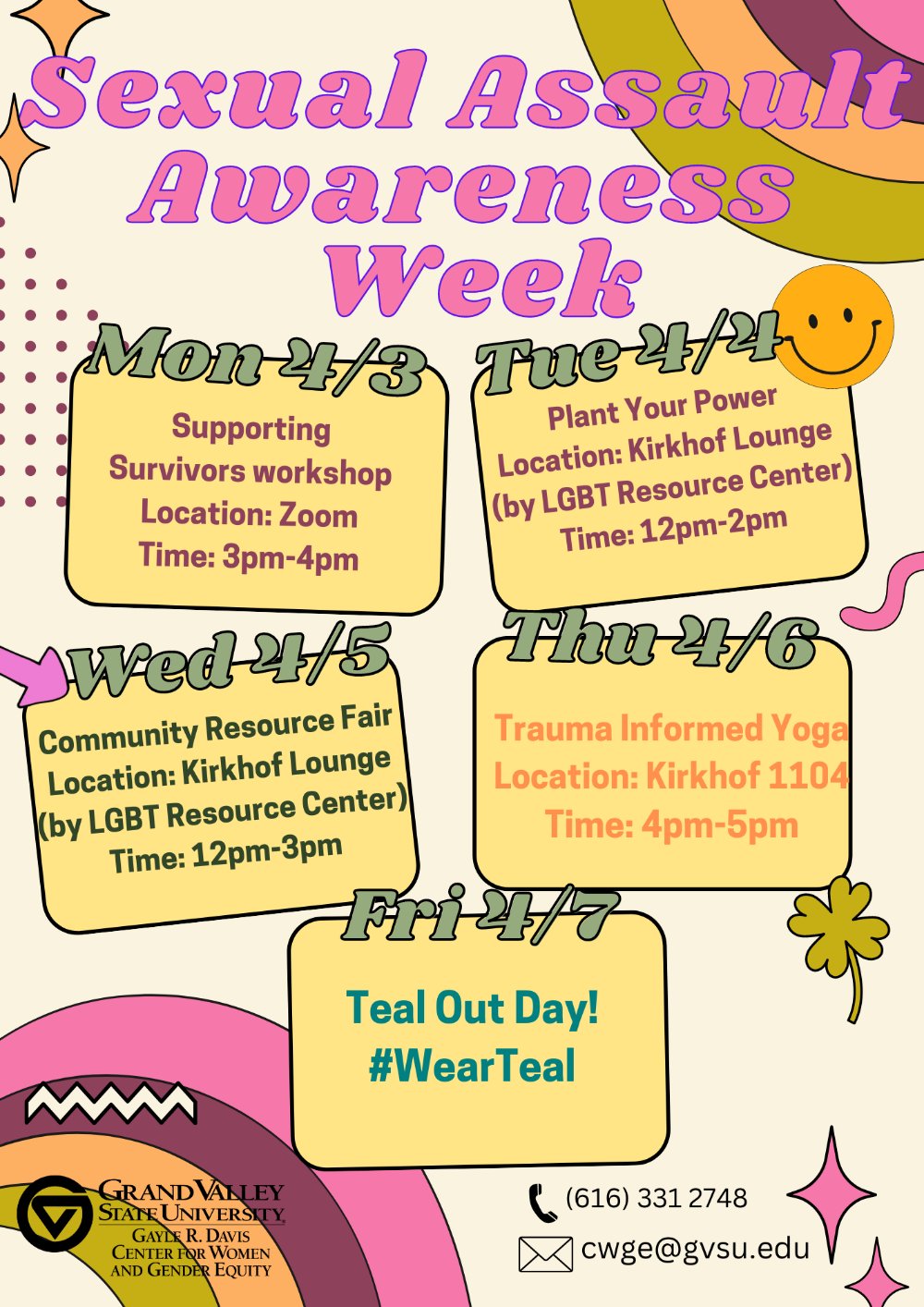 Visit gvsu.edu/cwge to learn more about our events for Sexual Assault Awareness Month.