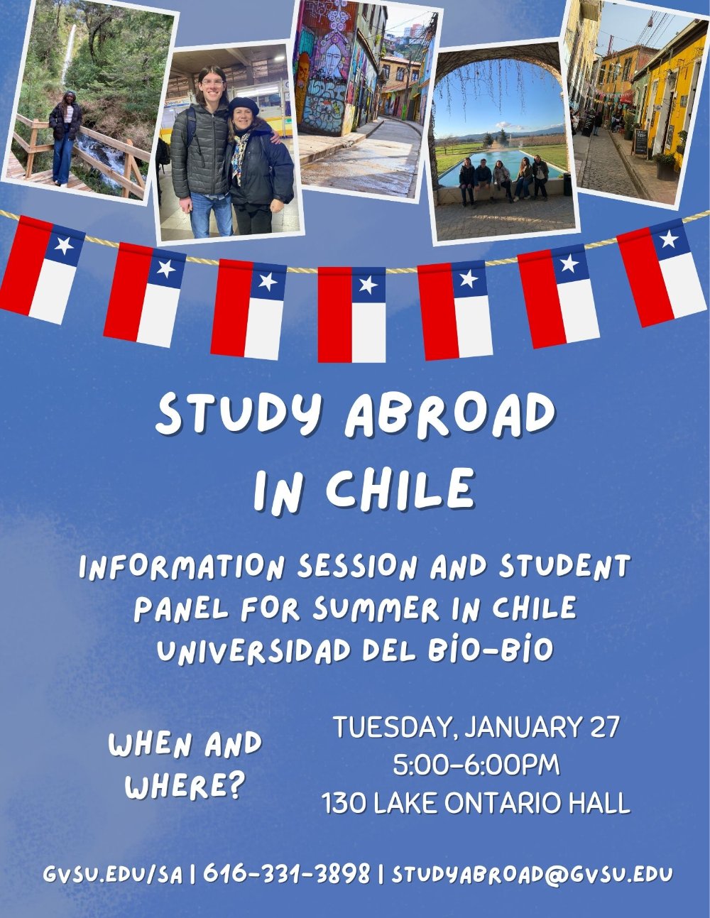 Join us for this upcoming info session to learn more about the Chile Summer Spanish Language with UBB GVSU study abroad program!