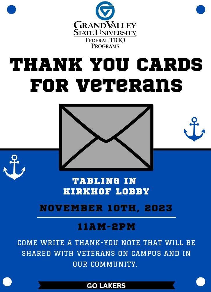 Come write thank you cards that will be shared with veterans on campus and in our community