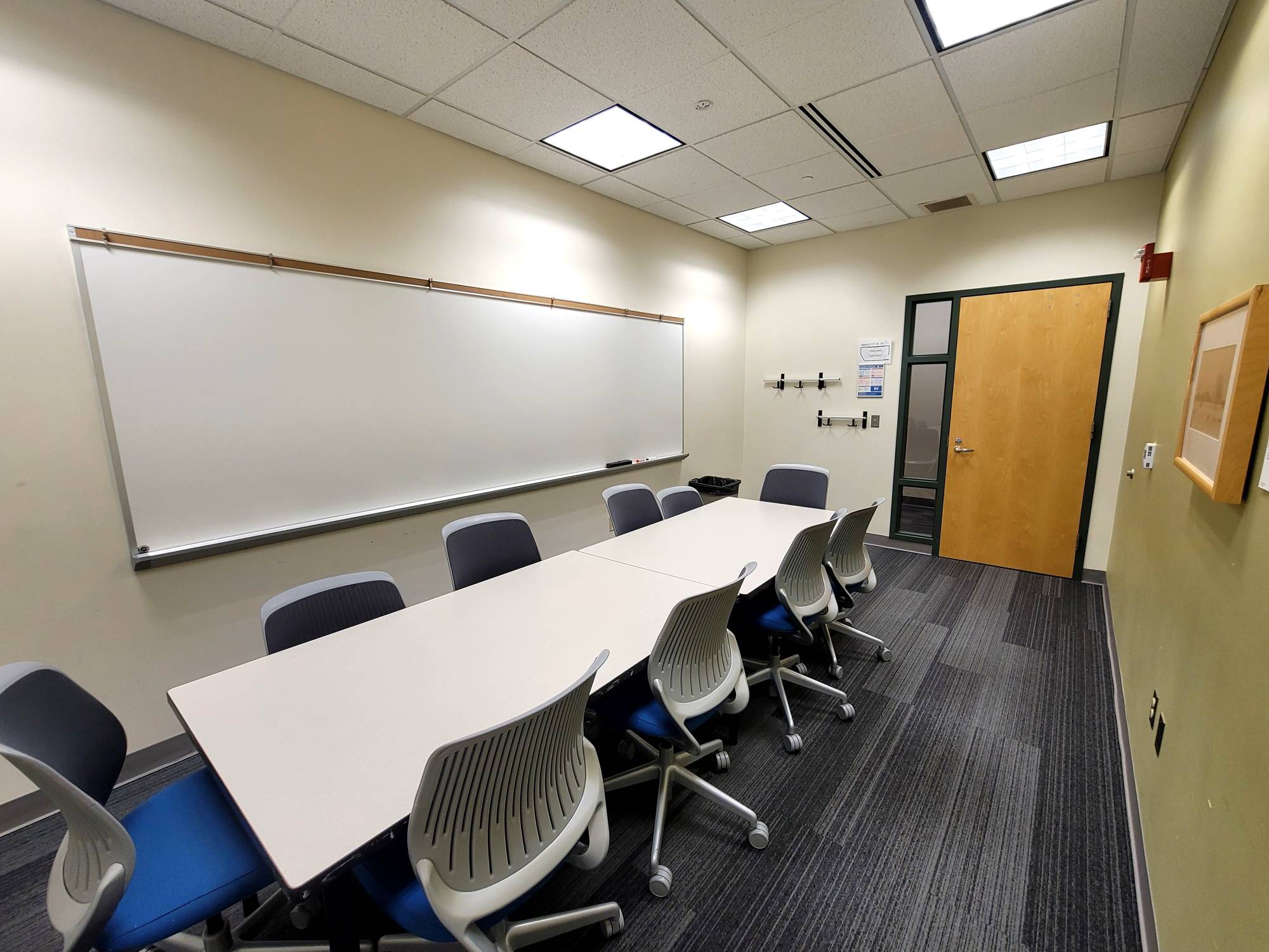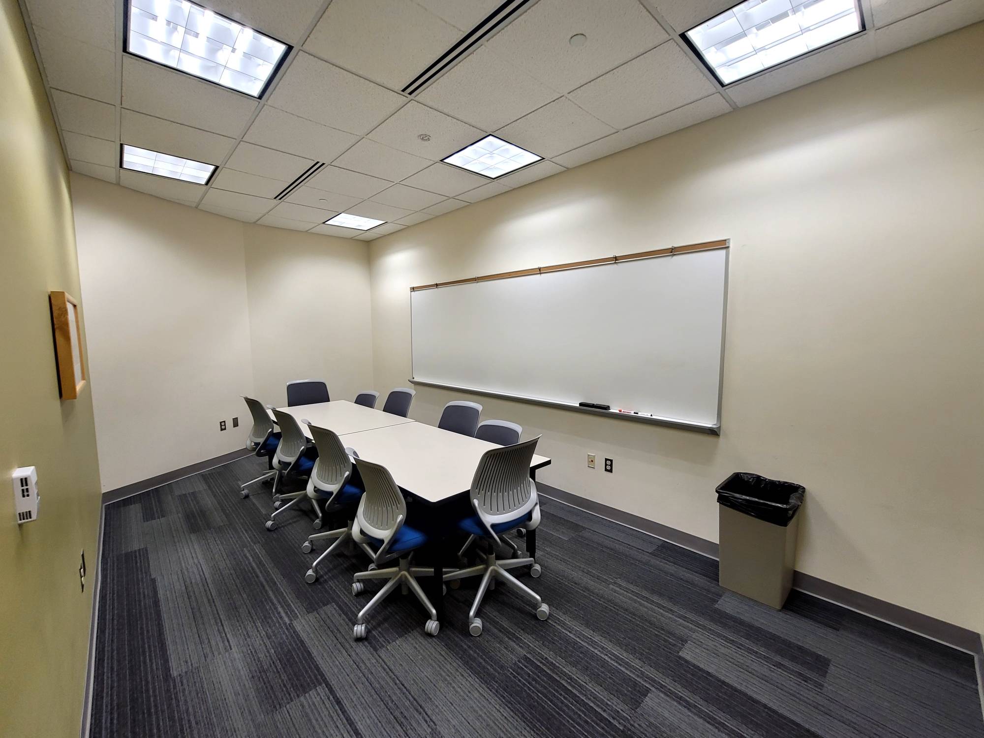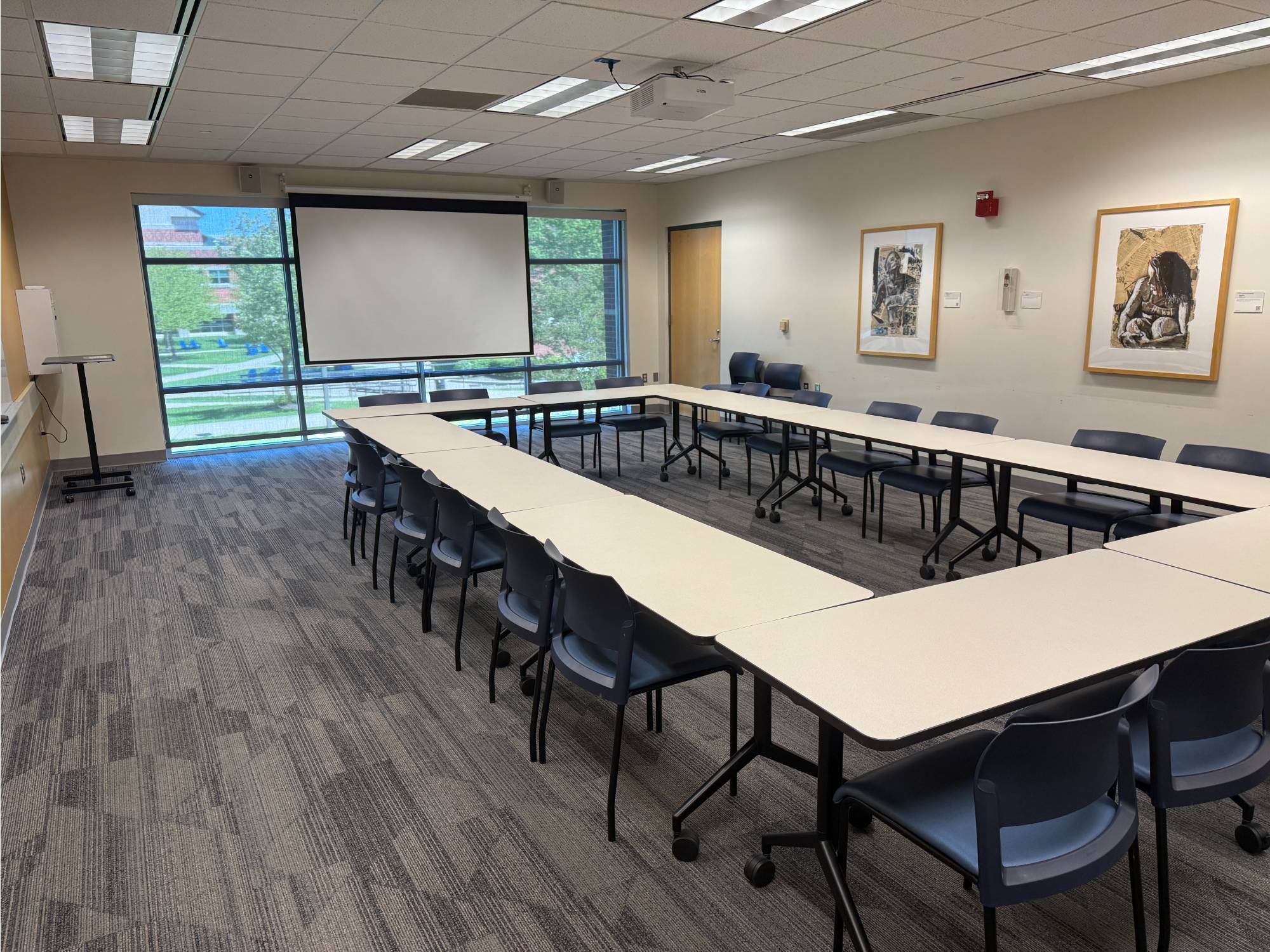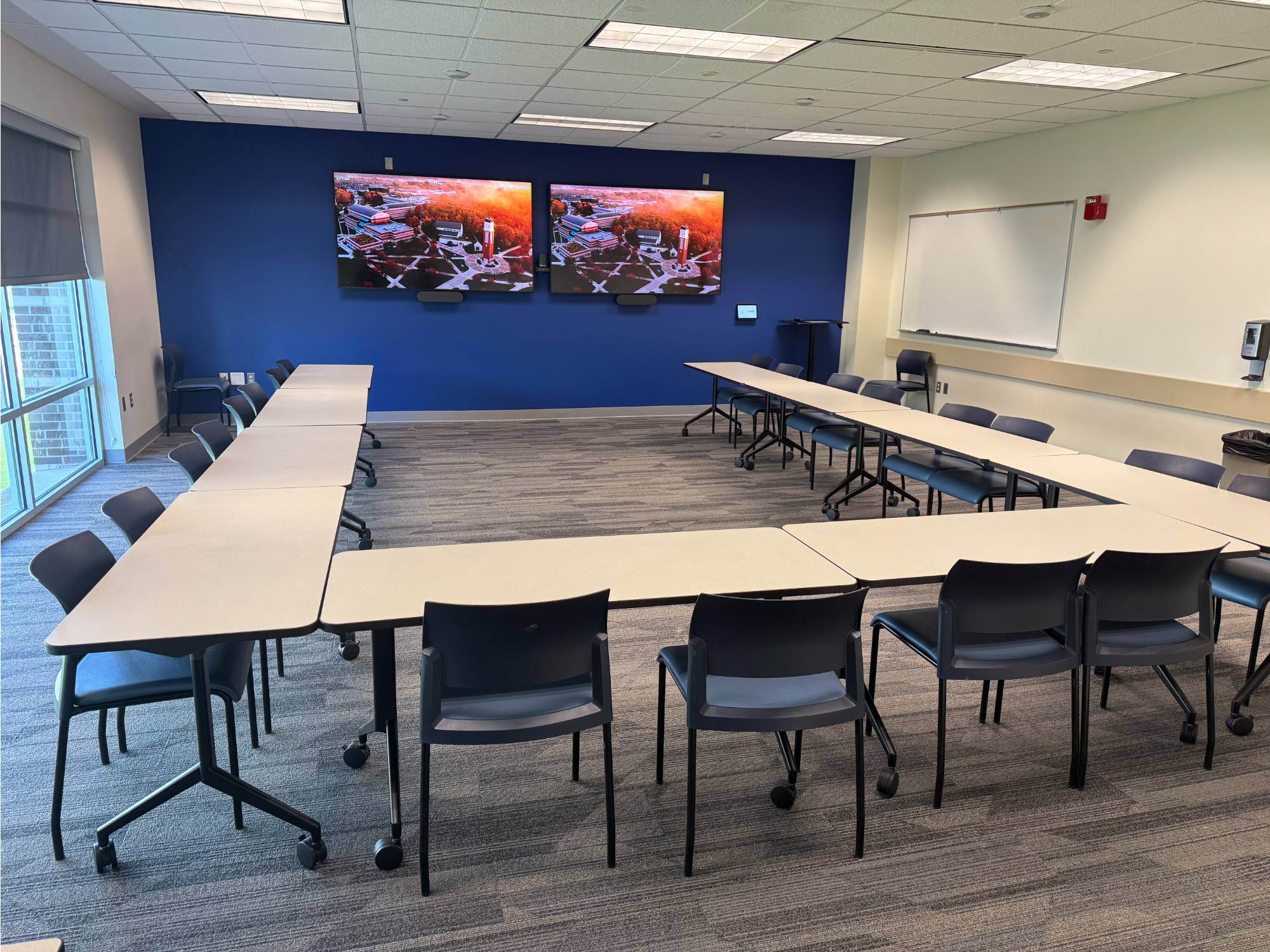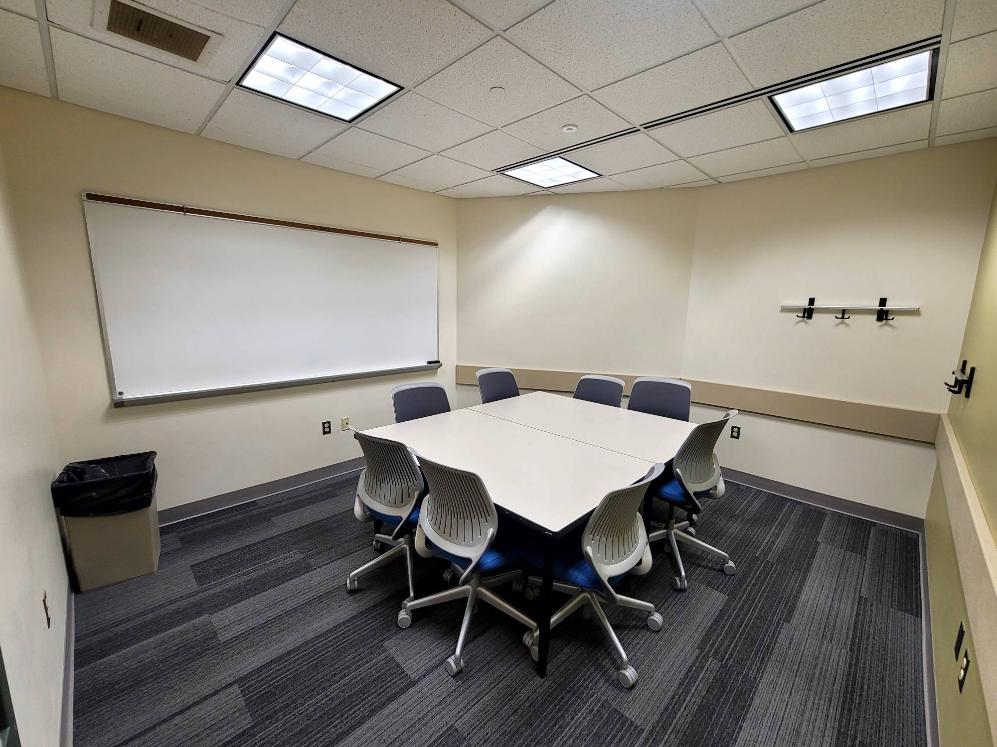 This is a smaller room that does not have installed A/V equipment, but televisions on carts, small portable sound systems, and mobile dry erase boards are available.
