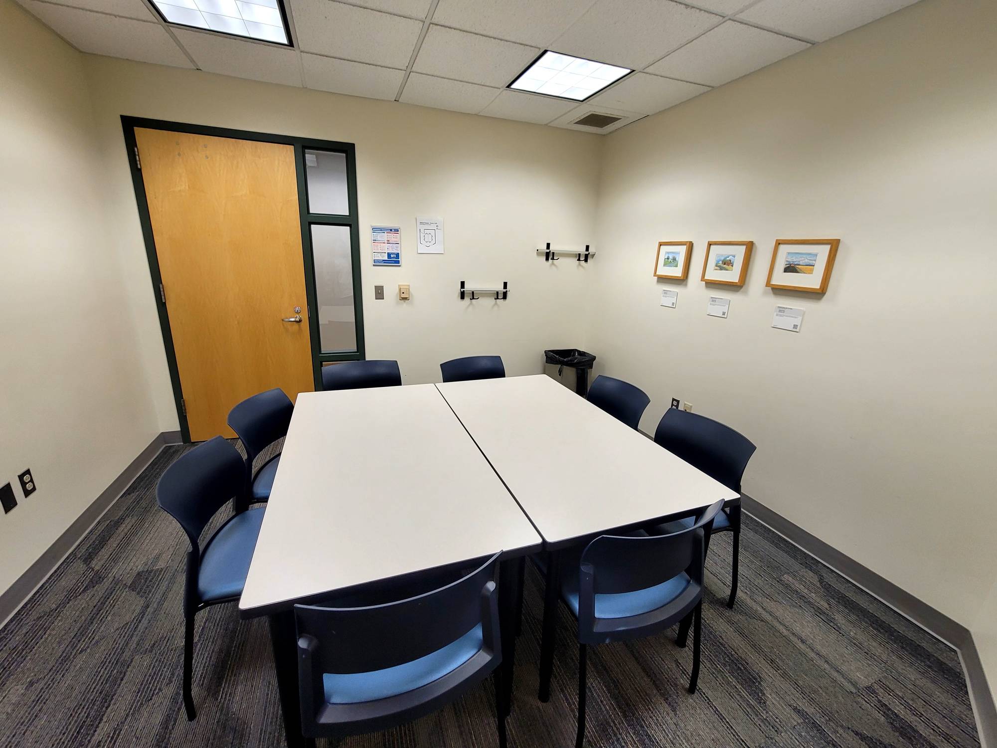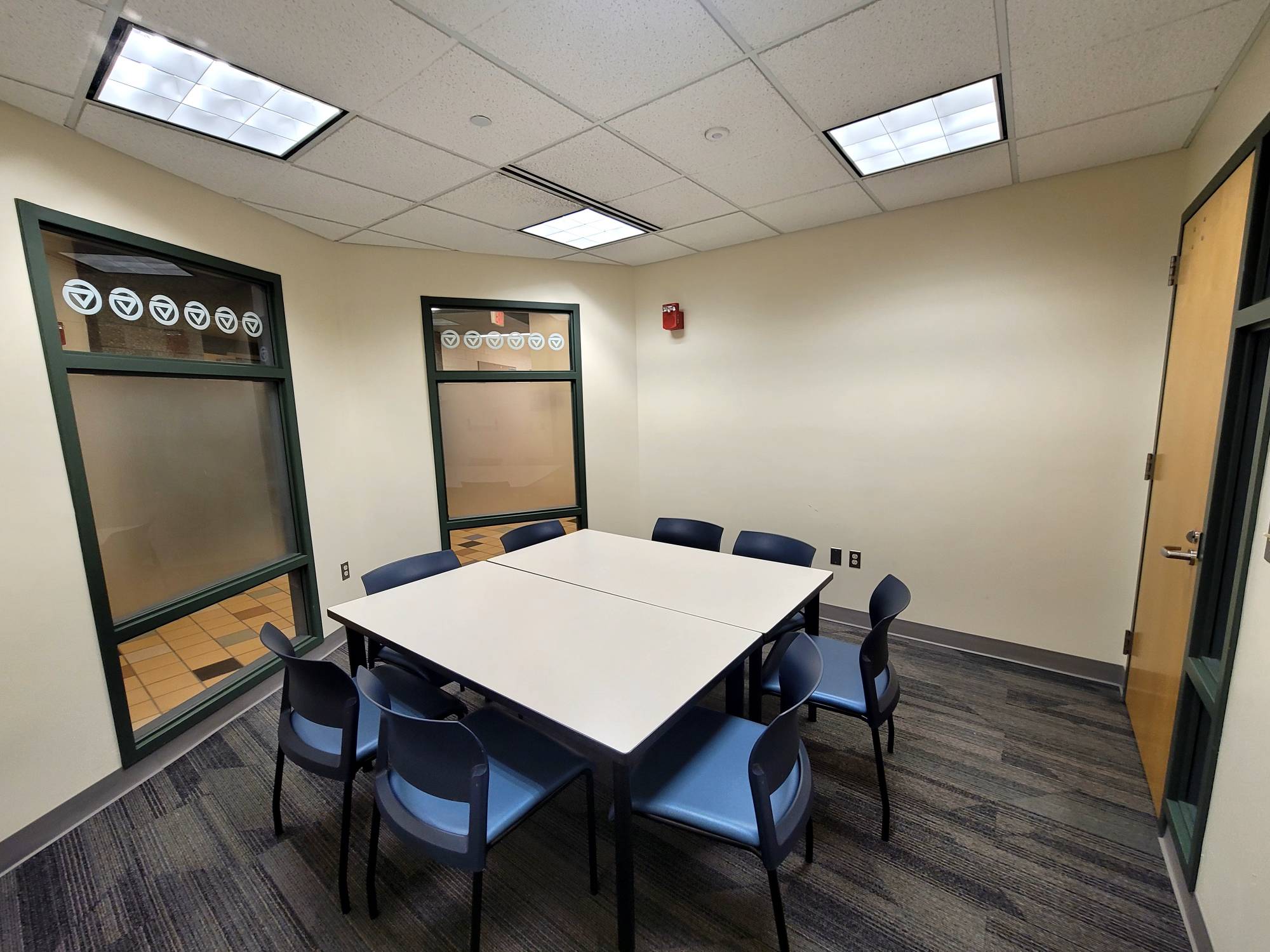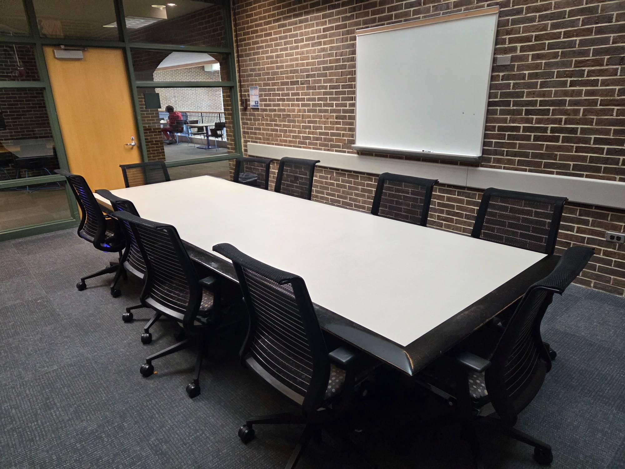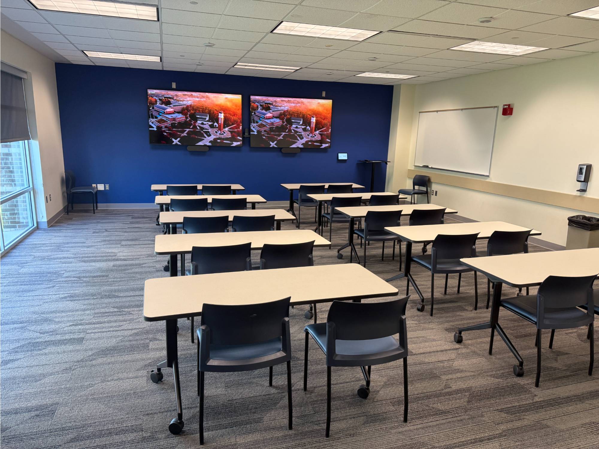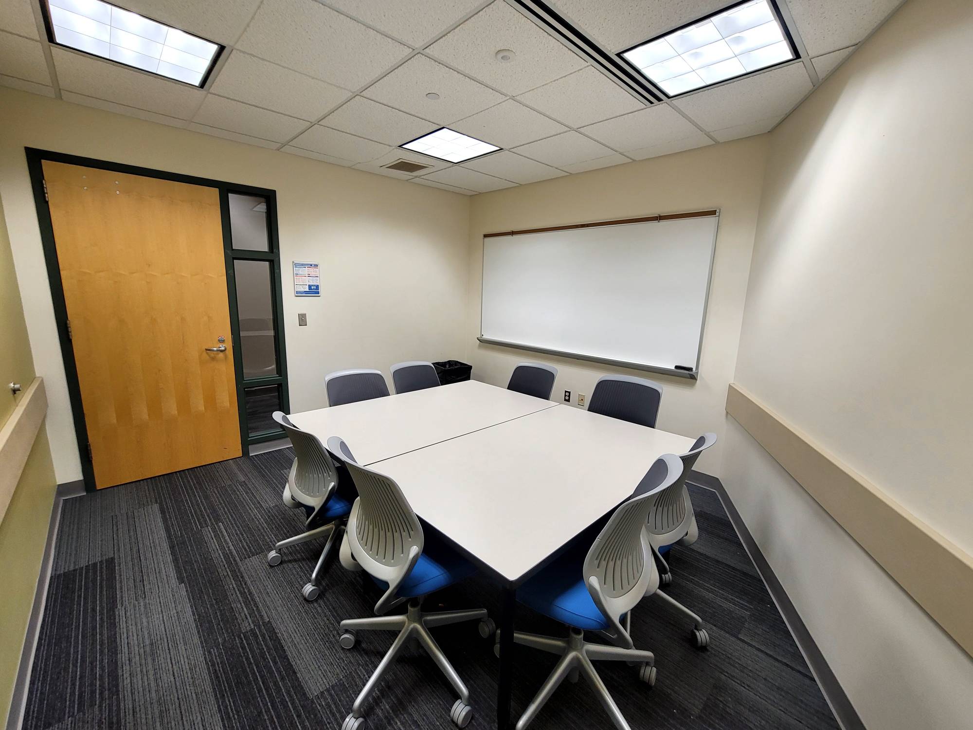 This is a smaller room that does not have installed A/V equipment, but televisions on carts, small portable sound systems, and mobile dry erase boards are available.