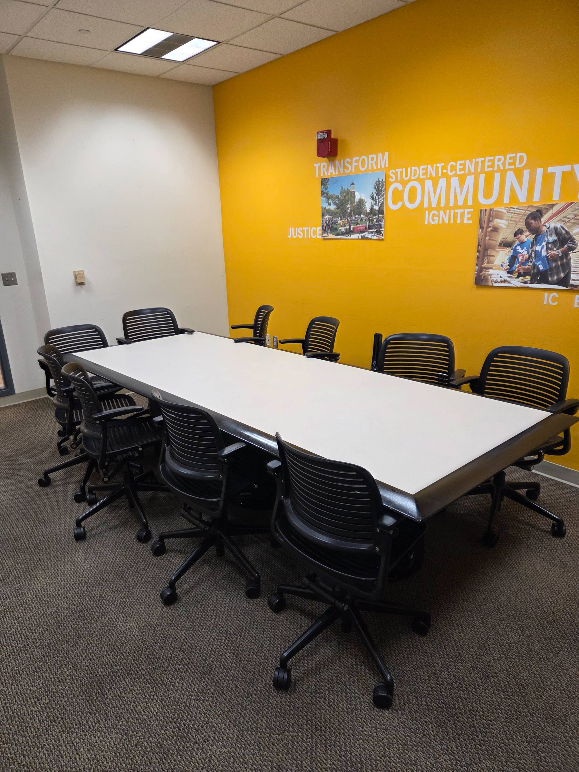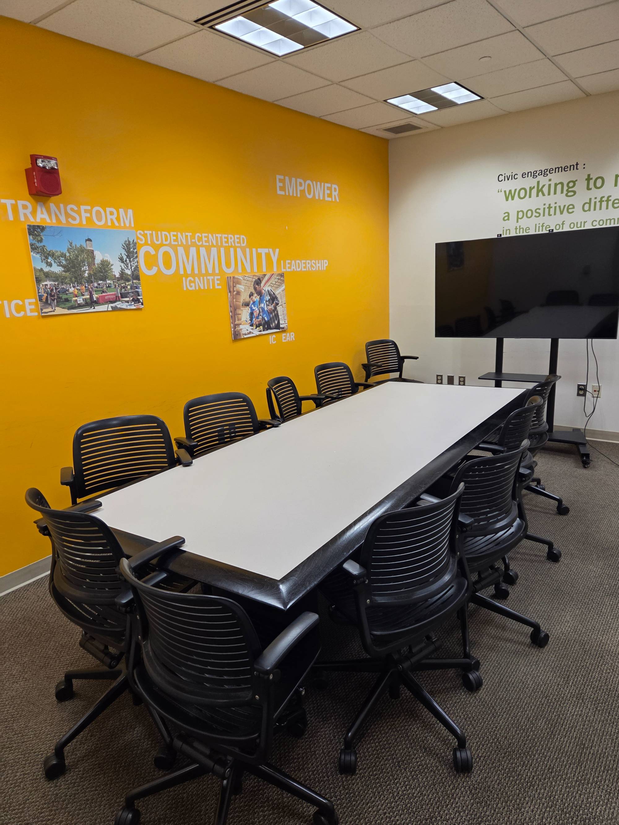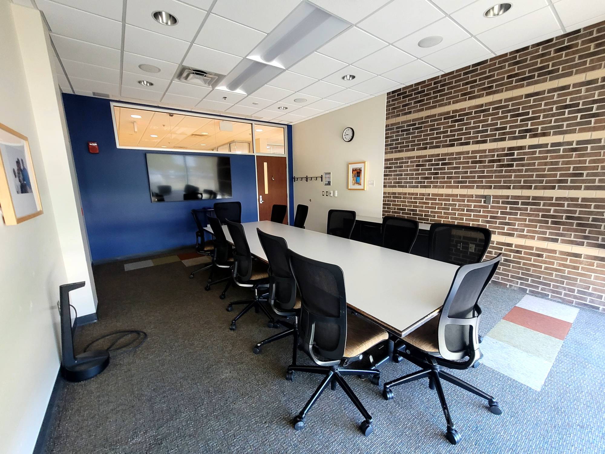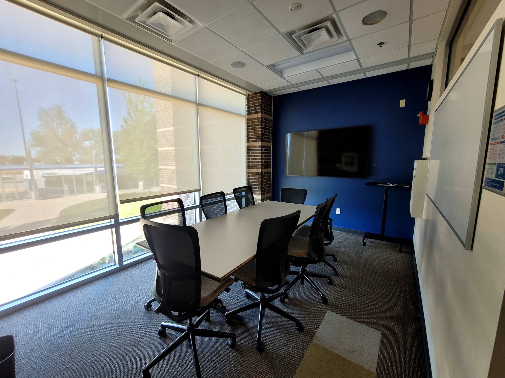 View 1 This is a smaller room that does not have installed A/V equipment, but televisions on carts, small portable sound systems, and mobile dry erase boards are available.