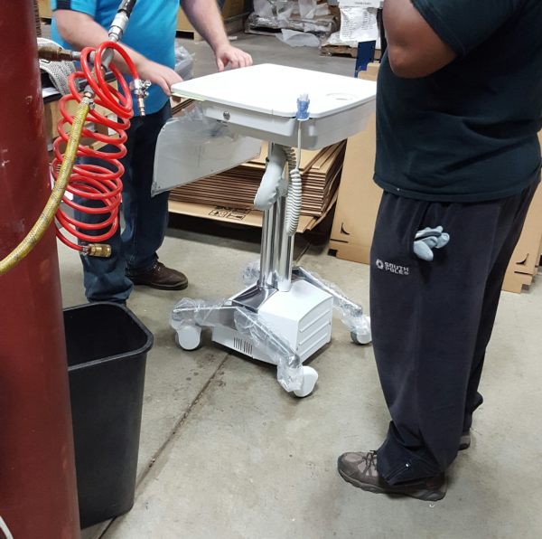 I also worked on designs for a cart that has a magnet in it so that hospitals can use tablets on the cart, move the carts around and not have the tablets fall off.