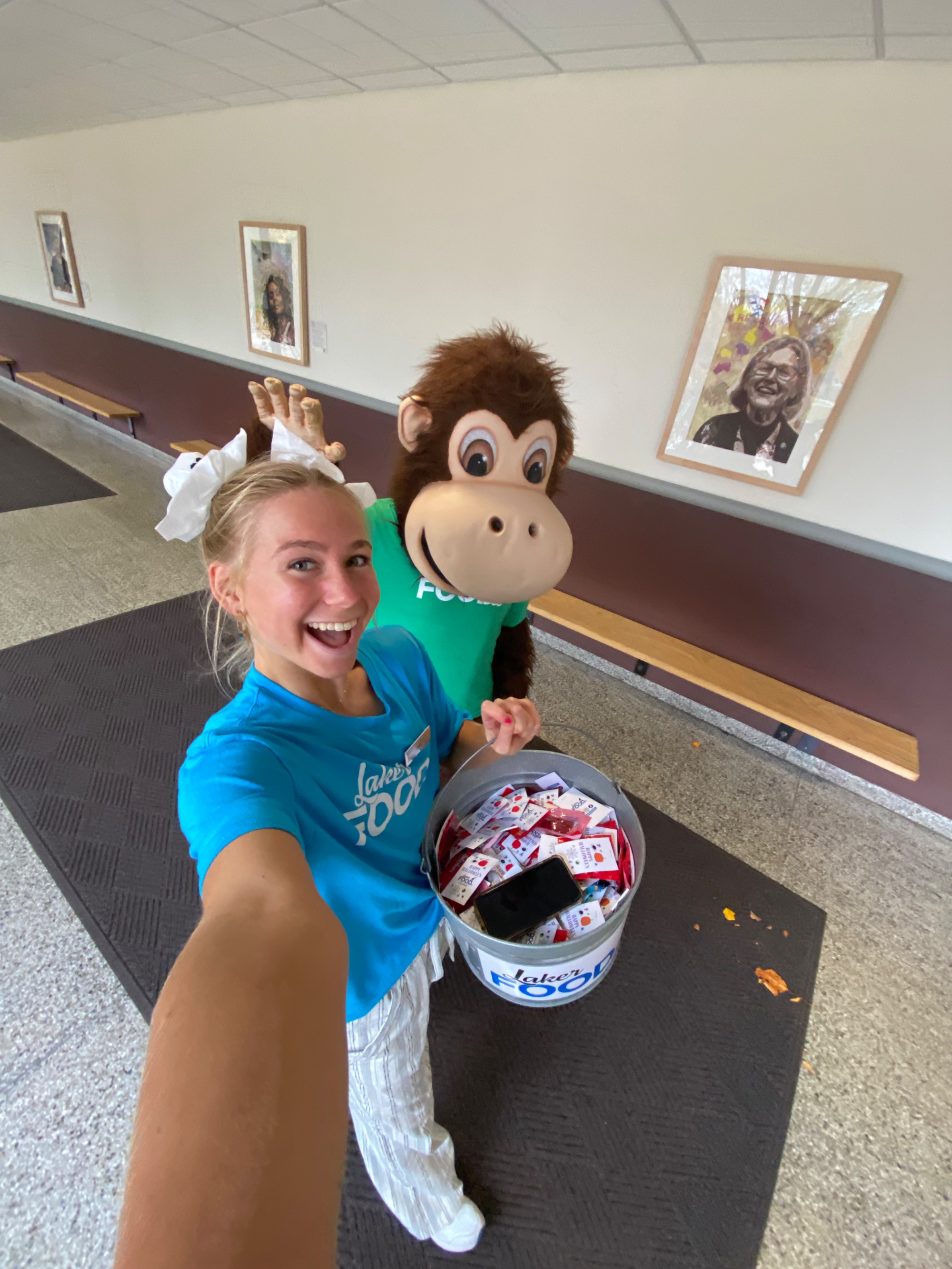 The Food Crew hand out candy and cards to students on Halloween 2024