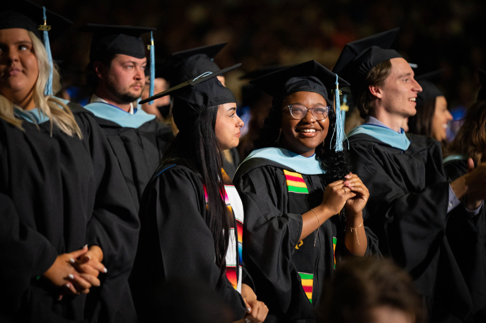 Graduates during a 2023 commencement ceremony are pictured. Three ceremonies are planned for Friday and Saturday at Van Andel Arena in Grand Rapids.
