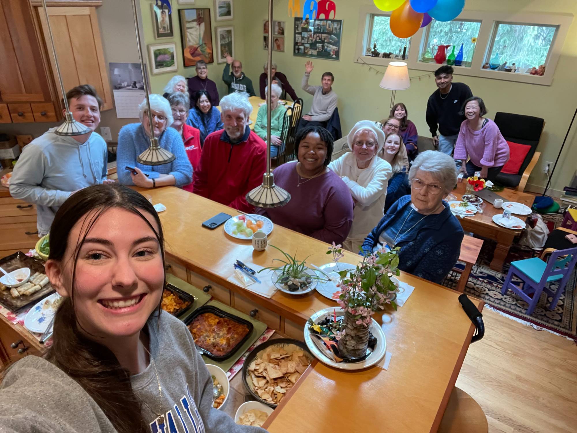 On 4/24/24 (Wednesday of the Final Exams week), SAGE and Grand Connections got together to celebrate another successful year of growth. We also celebrated the graduation of SAGE president Jack and graduate student assistant Bipin. They will be sorely missed! We thanked them for their work with some special graduation gifts and a big feast of foods and lots of friends we made over the past couple of years!