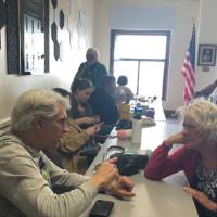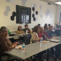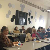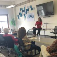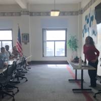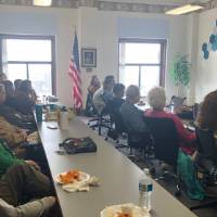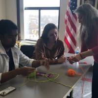 On March 15th, 20 people gathered at a big conference room next to Laura Armenta's studio in a historical building on Fulton Street. Laura presented a session on the cultural significance of weaving and knitting and how these crafts connect different generations and our communities together. After her presentation, people experimented with colorful yarns, especially finger knitting.