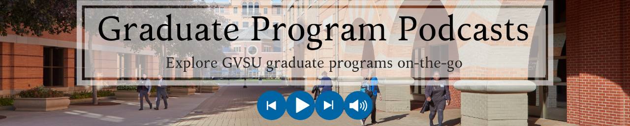 The following podcasts will outline the graduate programs at Grand Valley State University. Each podcast will provide an overview of the admissions process, degree requirements, curriculum structure, and distinguishing qualities of the program. For more information on your program of interest, please contact the director of that program.