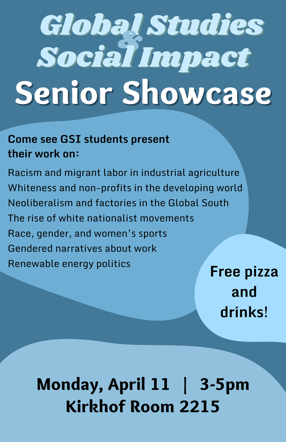 Global Studies and Social Impact (GSI) course of study addresses these challenges by placing contemporary issues center stage, in historical context, while engaging students in interdisciplinary exploration and problem solving, and preparing them to be innovative, flexible thinkers within their local and global communities.
