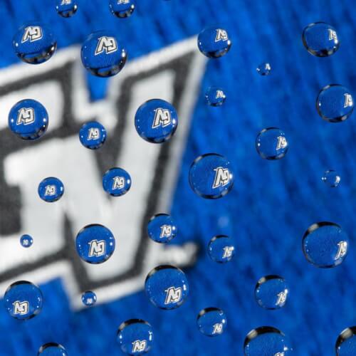 The images below were achieved by placing water droplets on a Rain-X coated piece of glass. A photographic print was placed a few inches below; the camera lens, piece of glass and print had to be parallel with two lights on either side. Exposure was made: 1/50 sec, F32, ISO 2500.