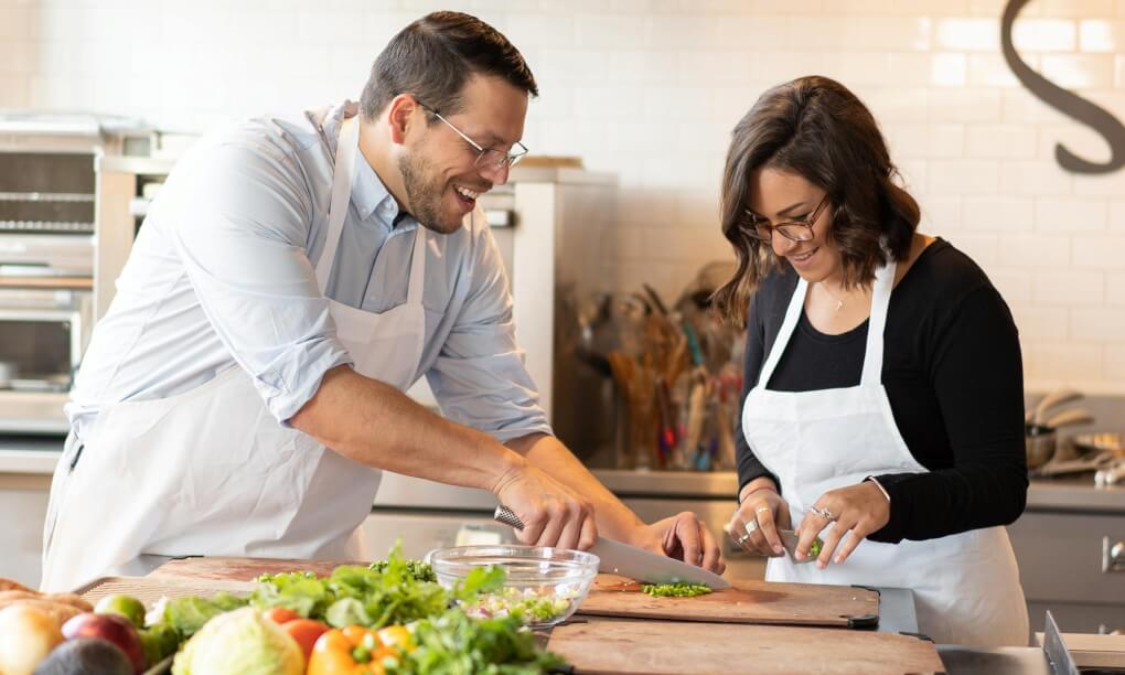 Bernal, vice president for Inclusion and Equity, taught Gabriela (Gaby) Dittrich, a graduate student, knife skills and the art of homemade tortillas during a cooking demonstration at Sur La Table, a retail store in Grand Rapids that sells kitchenware products and offers cooking classes.
